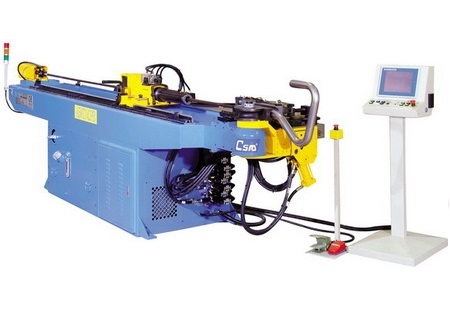 Giętarki TNCPB są najtańszą maszyną pozwalającą na gięcie skomplikowanych kształtów 3D. Podobnie jak prostsze maszyny TNCB oparte są na napędzie hydraulicznym, dodatkowo jednak wyposażone są w podajnik umożliwiający programowalny obrót rury o dowolny programowalny kąt. Obracanie rury odbywa się z użyciem Serwomotoru Mitsubishi pracującego w zestawie z enkoderem oraz serwowzmacniaczem. Zapewnia to bardzo dużą dokładność pracy. Wózek podajnika zawiera: • Szybkomocujący automatyczny zacisk rury • Listwę pomiarową oraz 8 zderzaków do ustawienia odległości między gięciami. Giętarki tego typu stanowią alternatywne i ekonomiczne rozwiązanie do giętarek automatycznych sterowanych CNC w trzech i więcej osiach. Zapewniają zbliżoną wydajność a jedyną istotna różnica jest nieco większa pracochłonność dla operatora, związana z ręcznym przesuwaniem rury do zderzaka.. Dzięki zastosowaniu kontrolowanego wycofania trzpienia oraz hydraulicznego wspomagania prowadnicy dociskowej (boostera) pozwala na uzyskanie bardzo dobrej jakości gięcia. Maszyna pozwala zaprogramować wiele kątów gięcia oraz obrotów co pozwala na seryjną produkcje wielu skomplikowanych kształtów