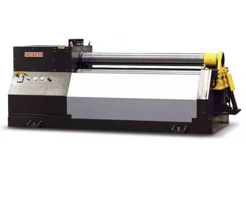 - Kontrola ciśnienia docisku, możliwość preselekcji ciśnienia docisku blachy pomiędzy dolnym i górnym walcem zapobiega poślizgowi blachy oraz zgniataniu powierzchni miękkich materiałów.