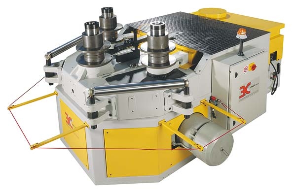 Giętarki do profili Serii CR26- to wysokowydajne maszyny do zwijania profili stalowych bądź aluminiowych. Dolna rolka decydująca o promieniu gięcia ustawiana jest hydraulicznie co pozwala na zwijanie dwuteowników profili czy rur grubościennych.